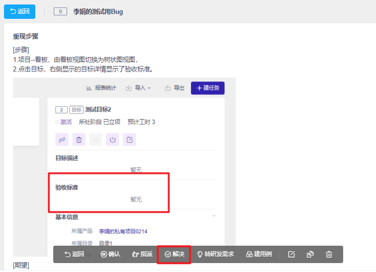 Bug详情页面的解决按钮: