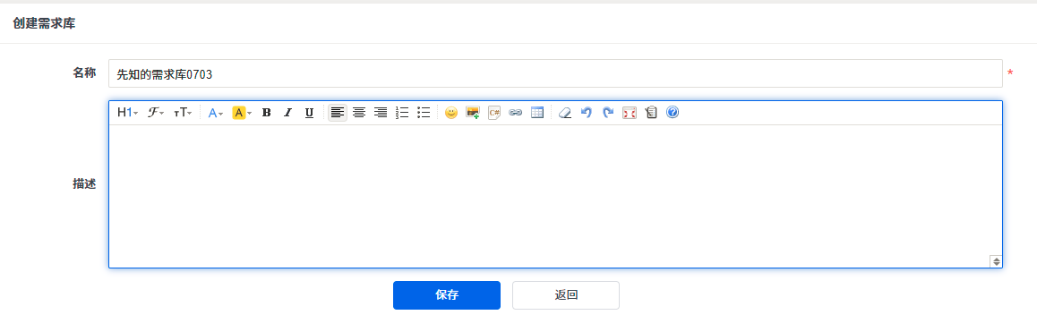 填写好需求库的名称和描述,点击保存就成功创建了需求库。