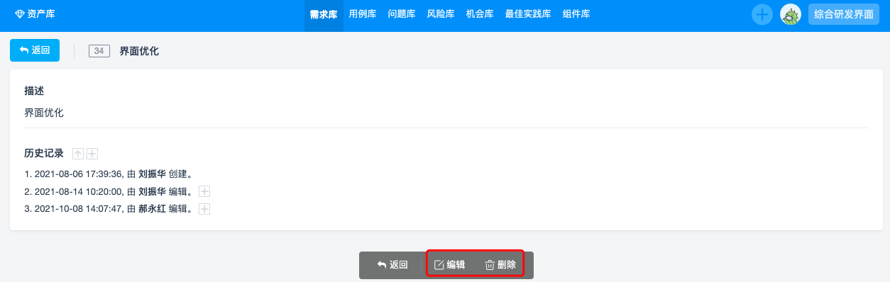 可以通过需求列表右侧的编辑按钮、需求详情页的编辑按钮来编辑需求库里的需求。