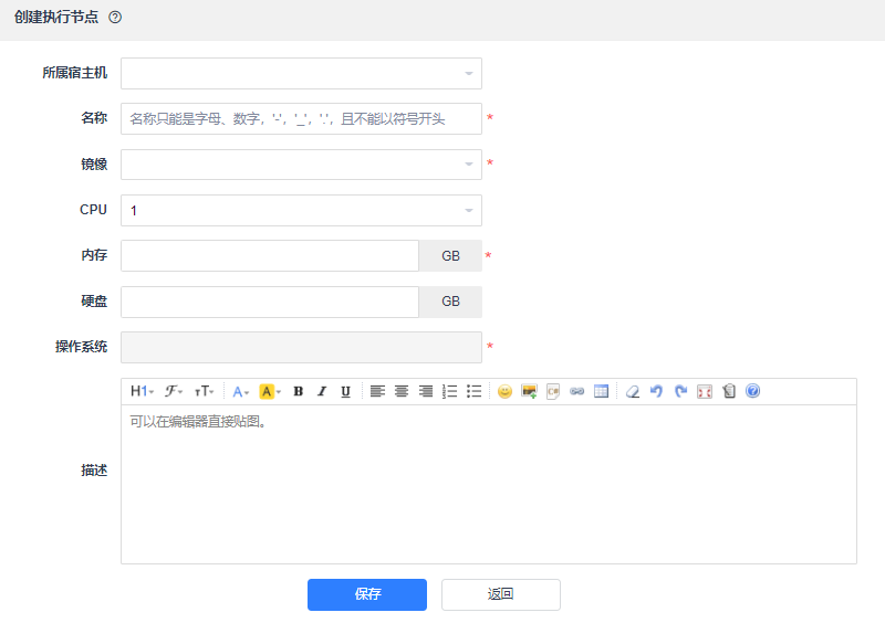 在自动化-执行节点页面,点击“创建执行节点”来创建执行节点。