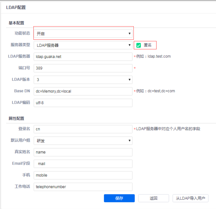 2. 登录名填的是 LDAP 服务器中所对应的用户名字段,如下图。