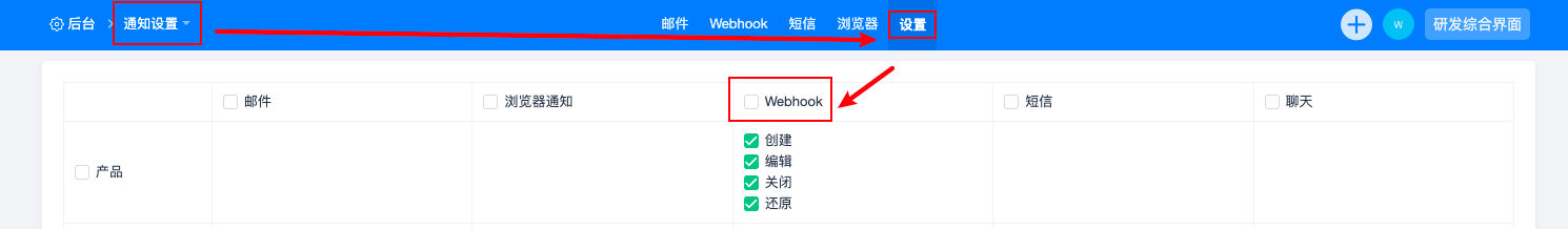 注:Webhook的触发条件需要在“后台”-“通知设置”-“设置”中勾选。