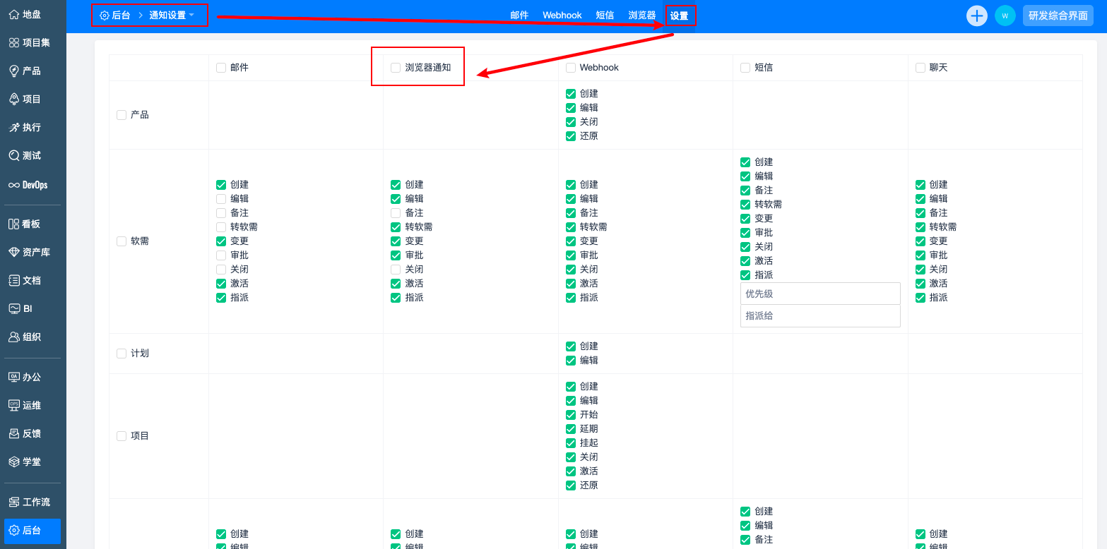 禅道11.6.2版本开始,新增了浏览器通知的设置功能。