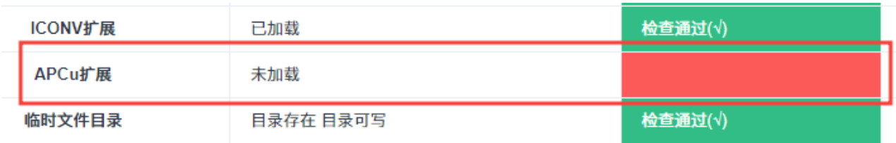 开启数据缓存时会检查是否加载了 PHP-APCu 扩展并且启用了 apc.enabled 选项,如果检查未通过会弹出相关提示。