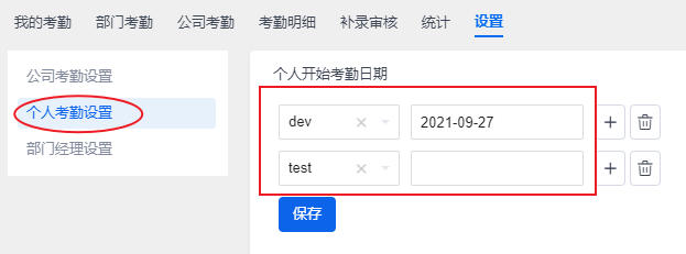 默认使用公司开始考勤日期计算考勤状态,如果设置了个人开始考勤日期则使用个人日期。
