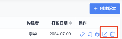 构建的维护包含编辑修改构建基本信息,删除构建,可以通过编辑和删除按钮来操作。