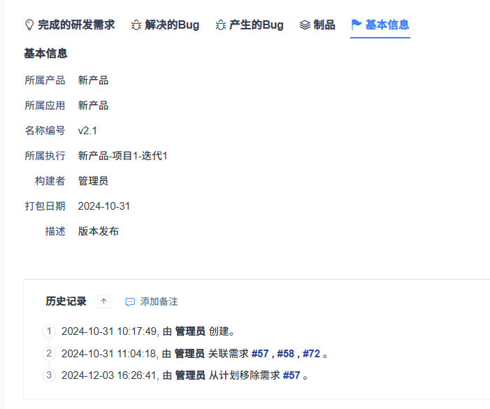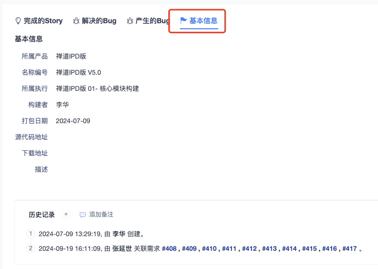 选择多个包含构建构建后相关构建下完成的需求、解决的Bug、产生的Bug将会自动关联到集成构建中,其他功能和单一构建相同。