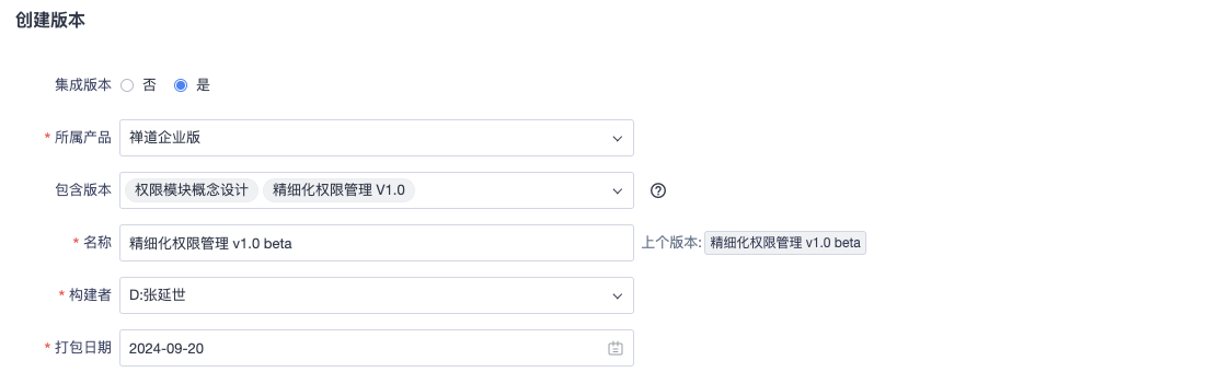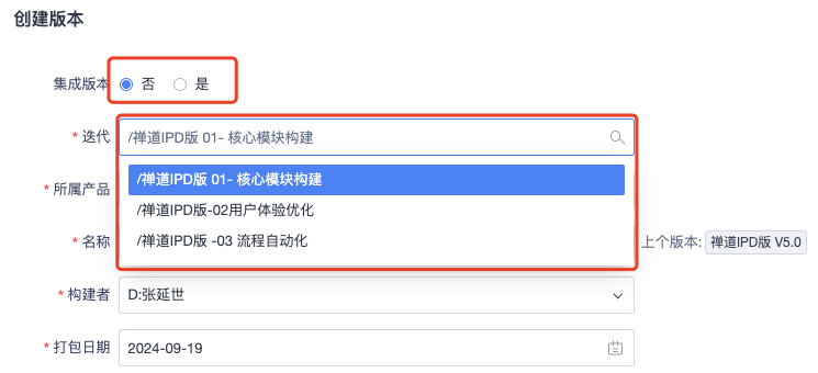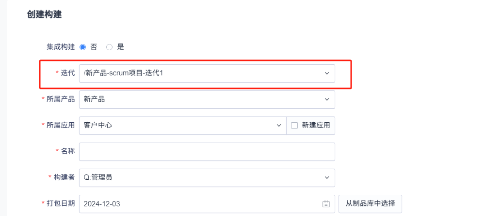 如果选择了集成构建,则包含构建中可以关联迭代下的多个构建。