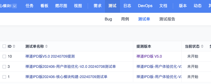 创建成功的测试单,可以在项目/执行--测试--测试单列表里查看到。