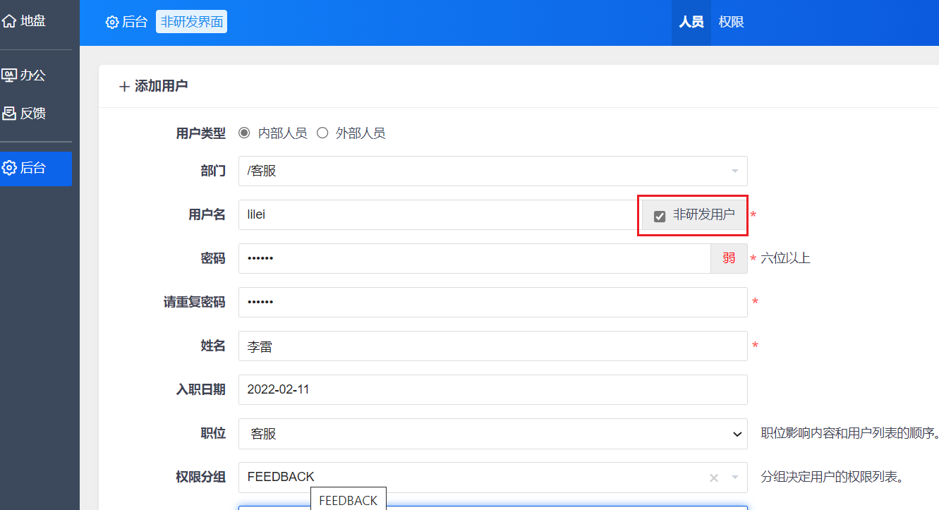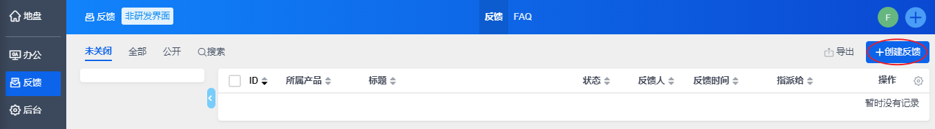 运营管理界面中,主要是给客服、销售等非研发人员使用,他们可以在该界面中提交反馈、跟踪反馈进度即可。
