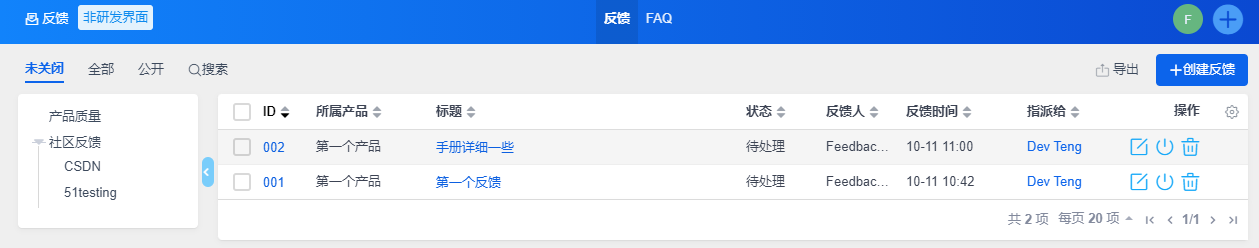 创建产品时,如果设置了反馈负责人,创建的反馈会指派给该产品的反馈负责人。