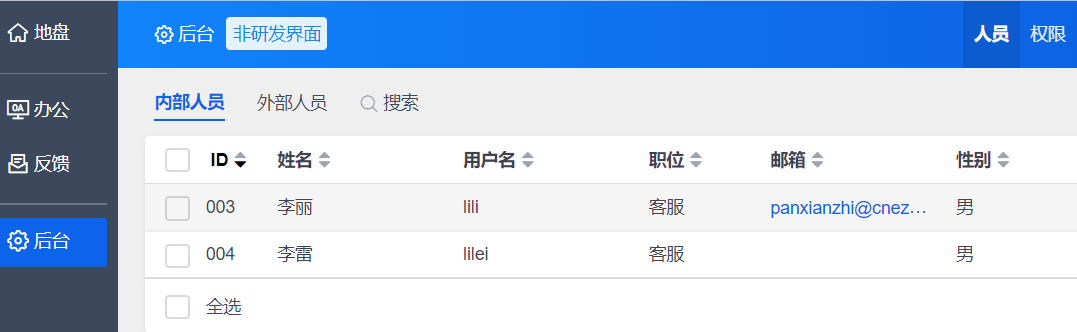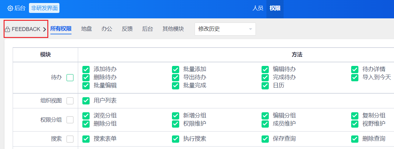 1.界面中维护反馈权限