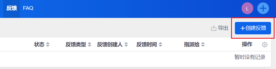 在反馈页面右上角,点击“创建反馈”,即可单个或者批量添加反馈。