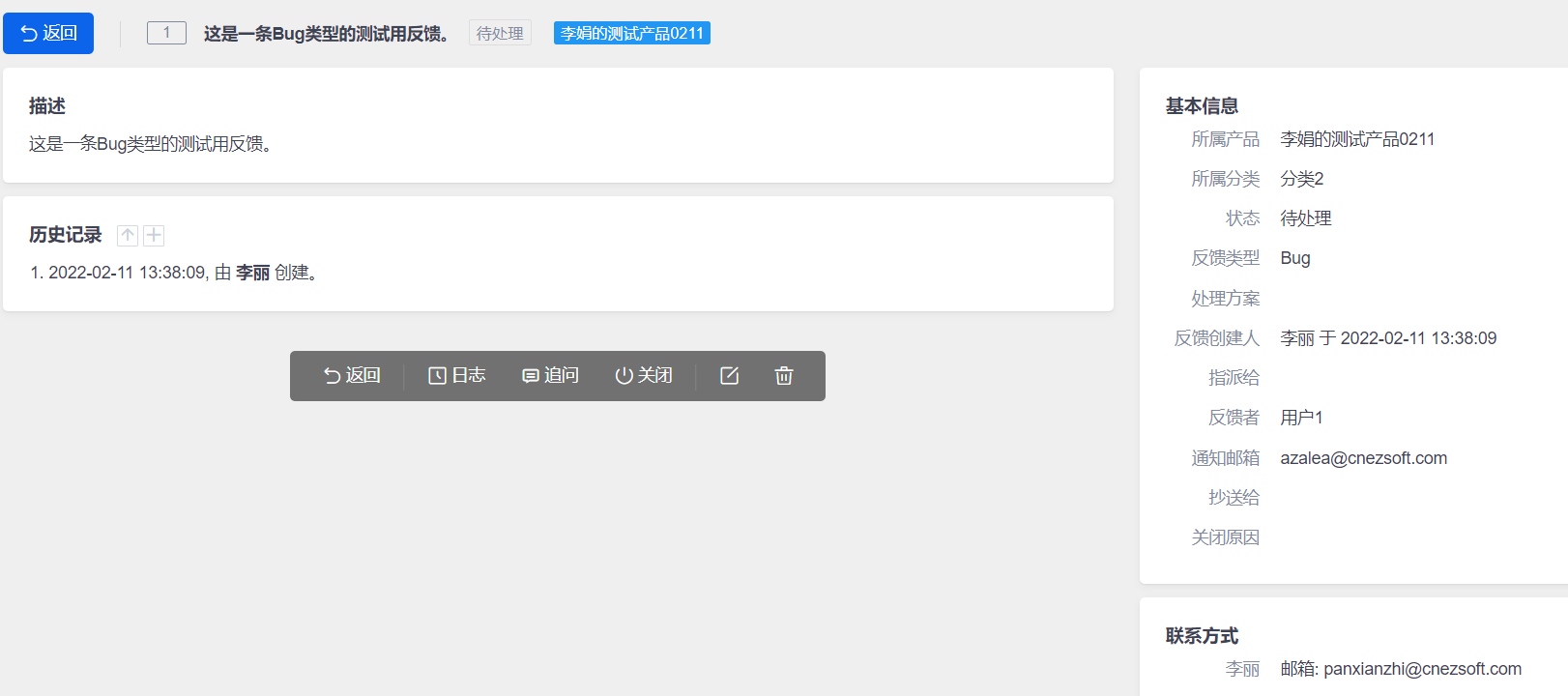 - 提反馈时填写了反馈者和邮箱