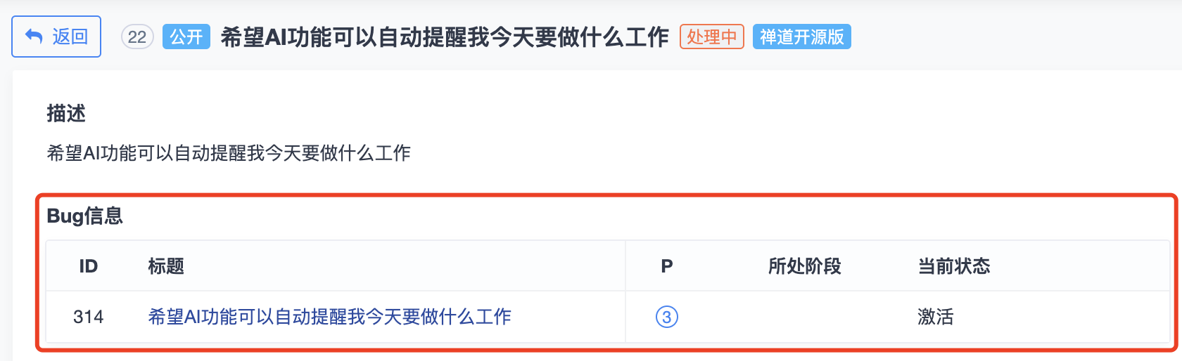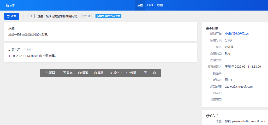 在反馈详情页面,可以查看到转为Bug后的信息。