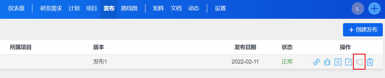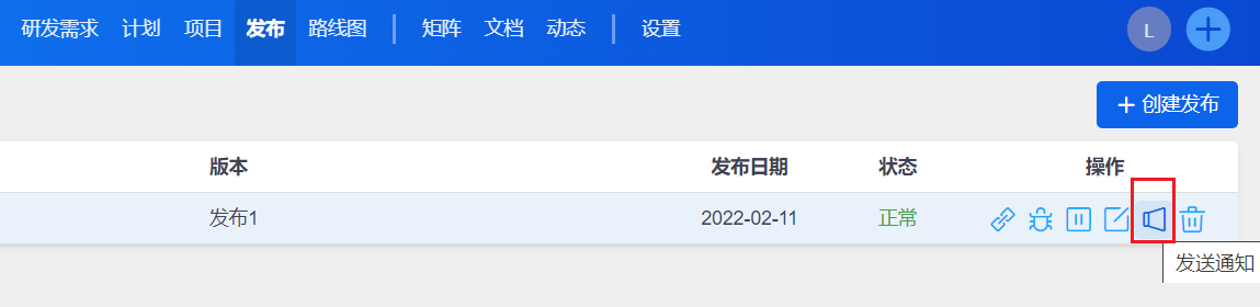 如果创建的发布还没关联需求和Bug,或者发布状态是未开始时,那么通知按钮是置灰的。