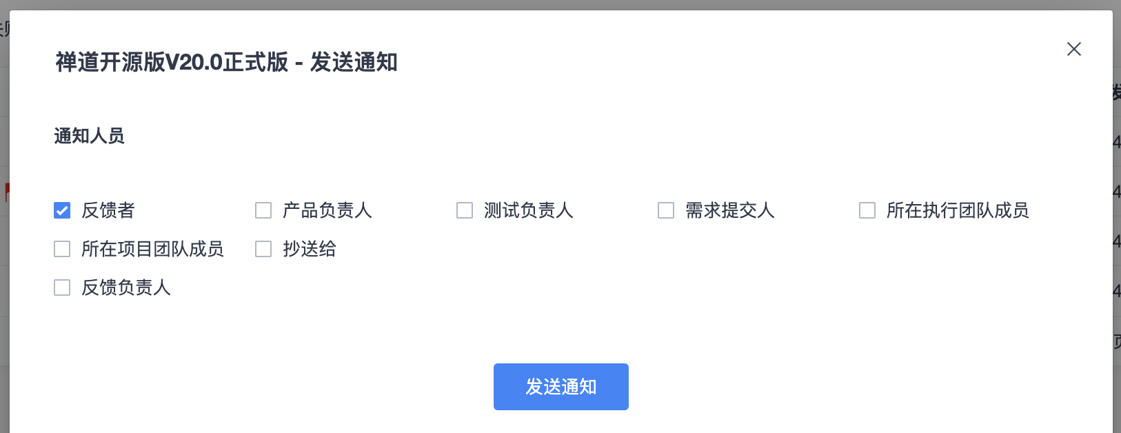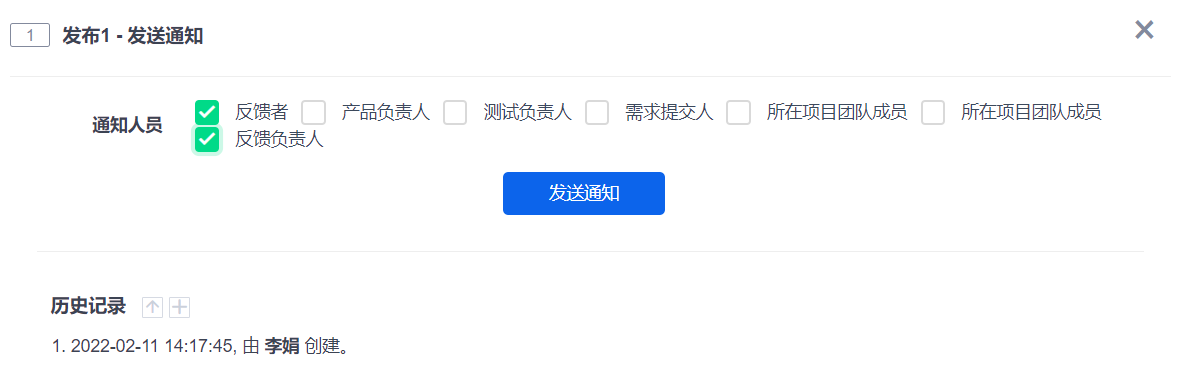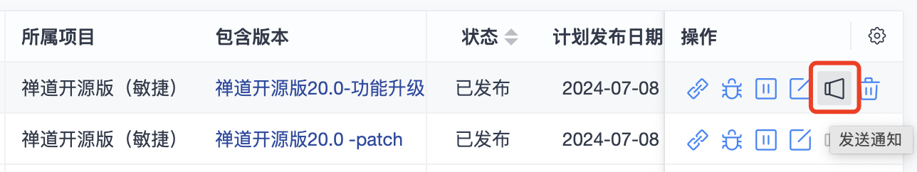 发布关联了需求和Bug,更新发布状态为已发布后,才可以发送通知。