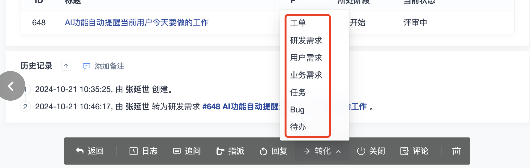 5.反馈转待办