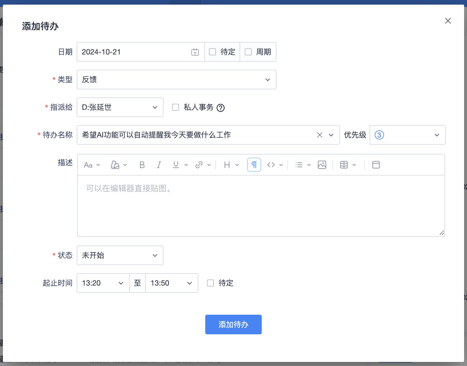 反馈的标签默认显示为待办的标题。