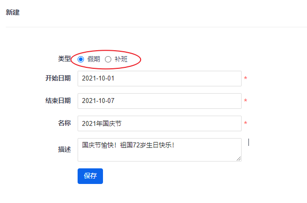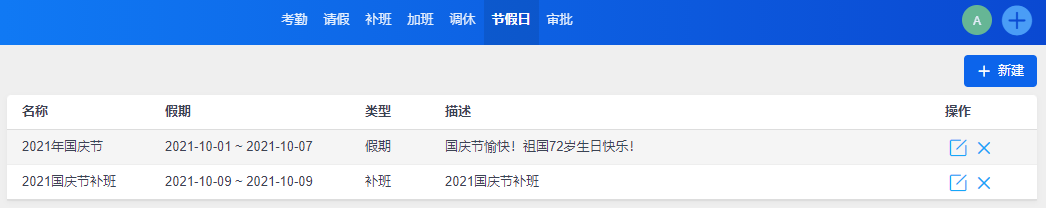 点击保存后,可以在节假日列表中看到这两个新增假期记录。