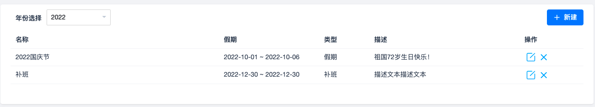 点击保存后,可以在节假日列表中看到这两个新增假期记录。