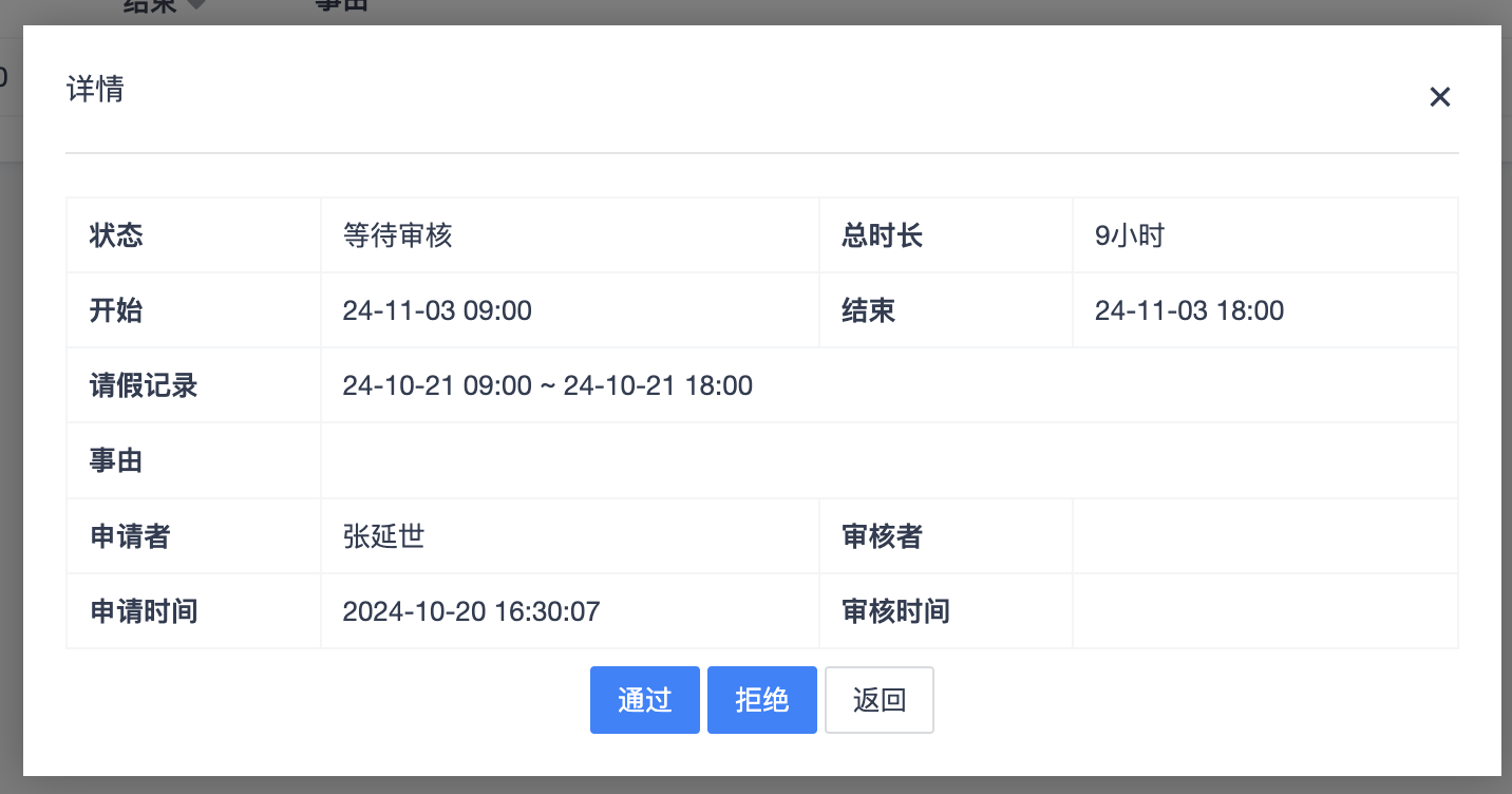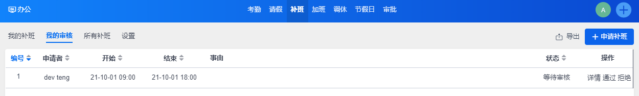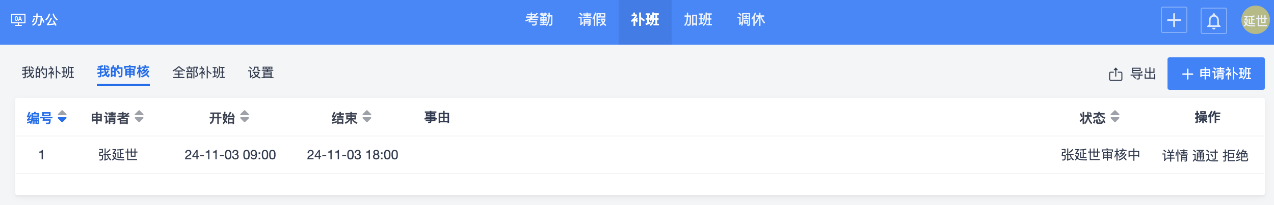 拥有审核权限的用户可以在“我的审核”页面管理自己部门的补班申请。