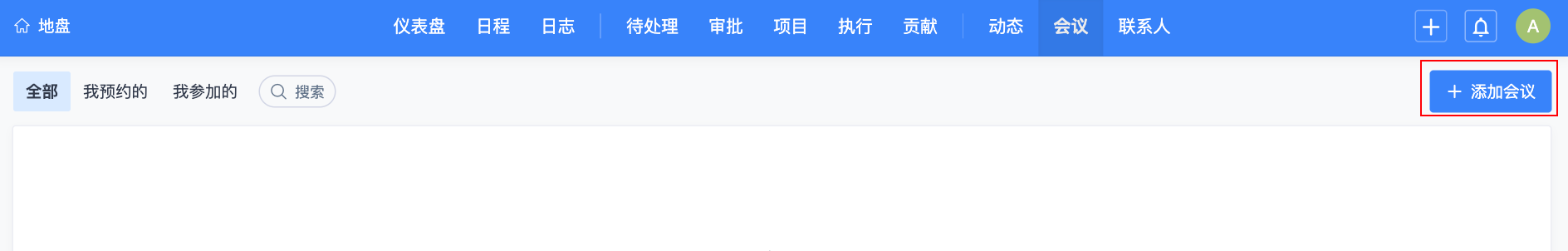 1. 点击“地盘”-“会议”-“添加会议”。