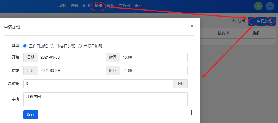 一、申请加班