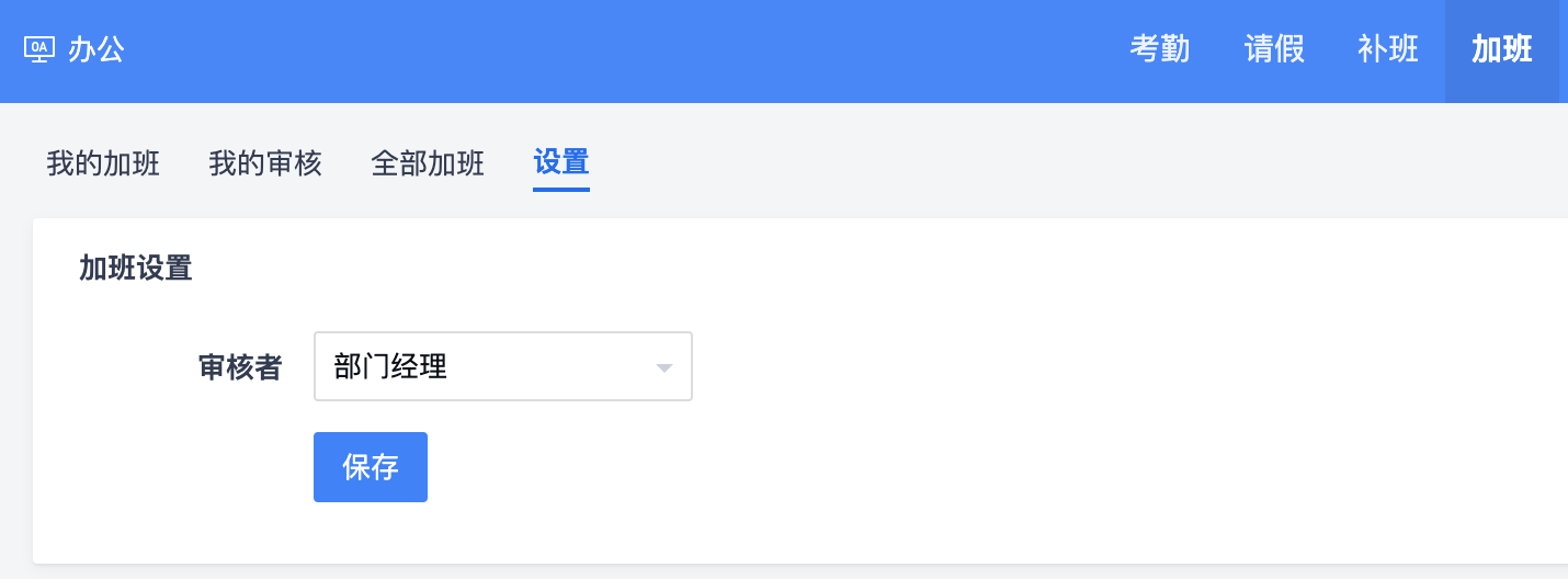 审核人设置同考勤一致,在“考勤”--“设置”中进行设置,也可以在“加班”--“设置”里设置。