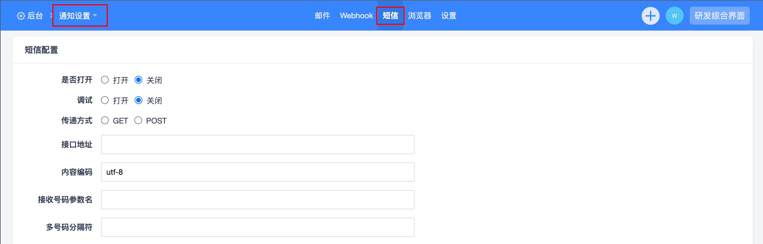 注:目前短信仅支持短信网关的短信发送,暂时不支持阿里、腾讯等短信开放平台的接入。