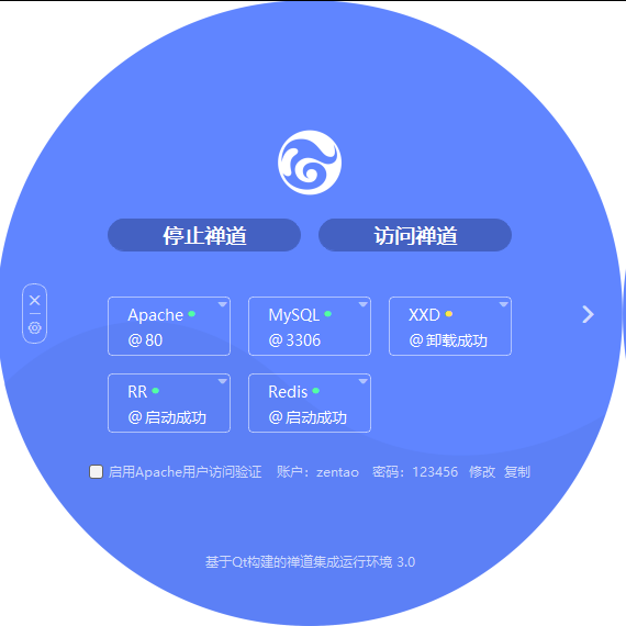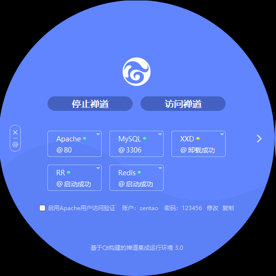 新的Windows一键安装包,本文档以禅道开源版21.7.5版本的Windows一键安装包为例,禅道集成基于Qt构建的禅道集成运行环境版本为3.0