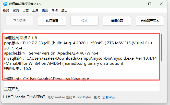 旧的Windows一键安装包,本文档以禅道开源版16.5版本的Windows一键安装包为例,禅道集成运行环境版本为2.1.8