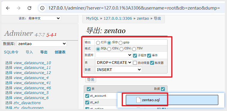 把旧Windows一键安装包备份的sql导入新Windows一键安装包的zentao数据库中