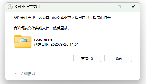 删除新Windows一键安装包中ZenTao/app/zentao目录下的文件时,会提示roaderunner正在使用,点击取消即可。