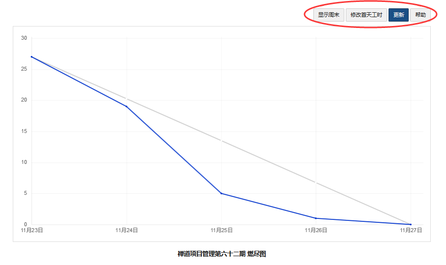- 新版本的禅道,燃尽图可以设置是否显示周末,还可以修改项目首天工时。修改首天工时,需要到组织--权限里分配。