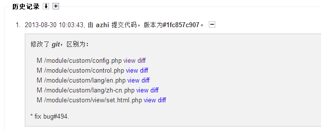实现上述功能有两个方案,一个方案是采用git自带的钩子机制,当有代码提交的时候,触发一个钩子脚本,然后分析注释,得出相应的bug, story或者task的id号,然后调用禅道的api,将相关的记录写入数据库。还有一个方案是通过git客户端软件的log命令,来获得所有的提交记录,然后分析,得出相应的id,写入数据库。