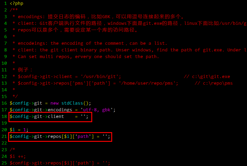 git模块的配置文件位于zentao/module/git/config.php。您可以直接修改这个文件,但建议您将改动保存到git/ext/config/git.php中。这样将来我们升级,就不会覆盖您的配置文件。