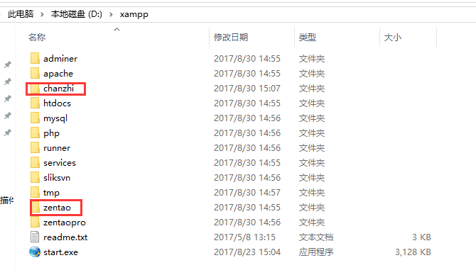 2、把chanzhi文件夹复制粘贴到禅道xampp包目录里