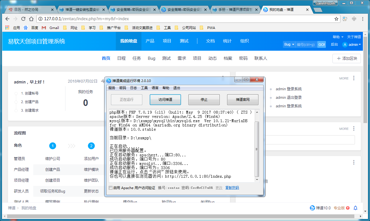 2、请保证禅道Windows一键安装正常使用,服务是启动的。