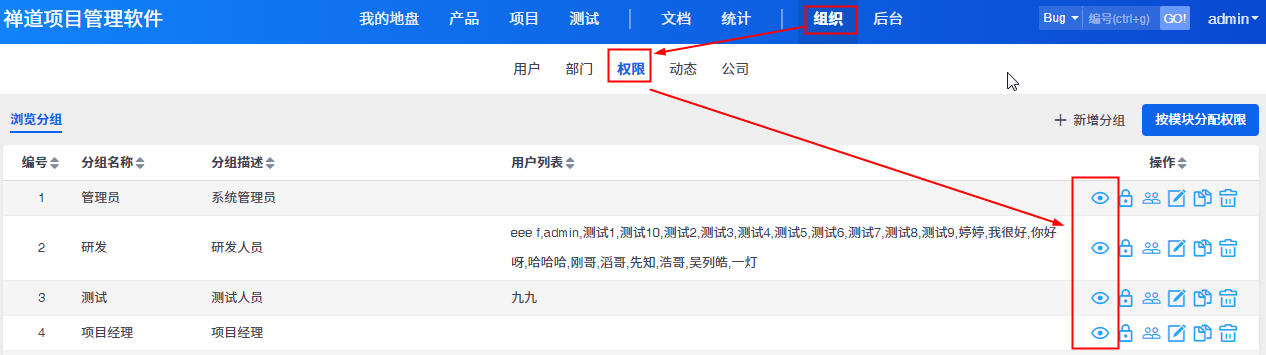 禅道里的权限控制比较灵活,在以下地方都可以进行权限相关操作: