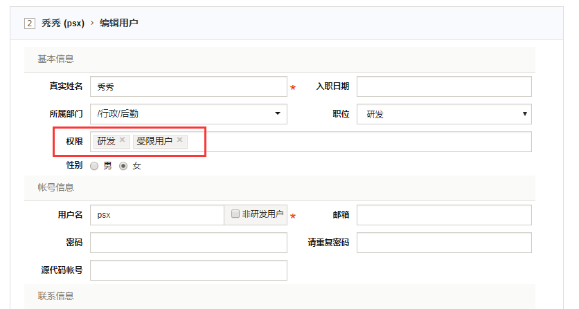 4、组织--权限里,设置了受限操作权限分组。属于该分组的用户只能操作与自己相关的内容。