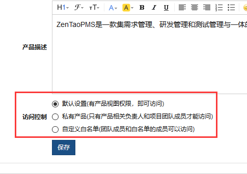 1、创建产品和项目时,可以设置访问控制。