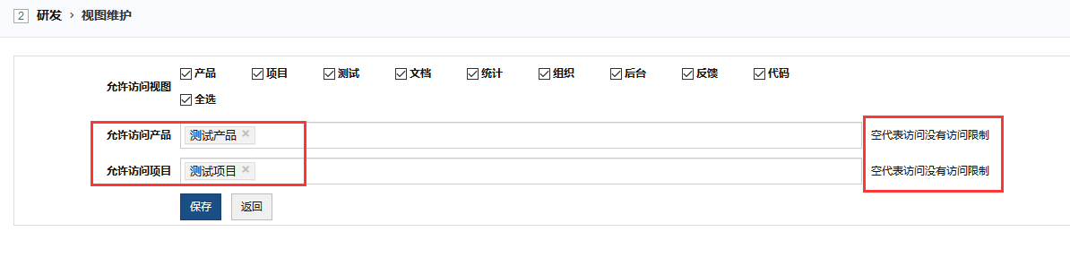 注:受限分组和受限用户只能编辑与自己相关的需求、任务、bug等,不能新增需求、任务、bug等。