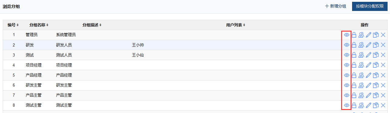 定位到了该用户所在的权限分组,就可以到该权限分组去具体查看权限分配情况。