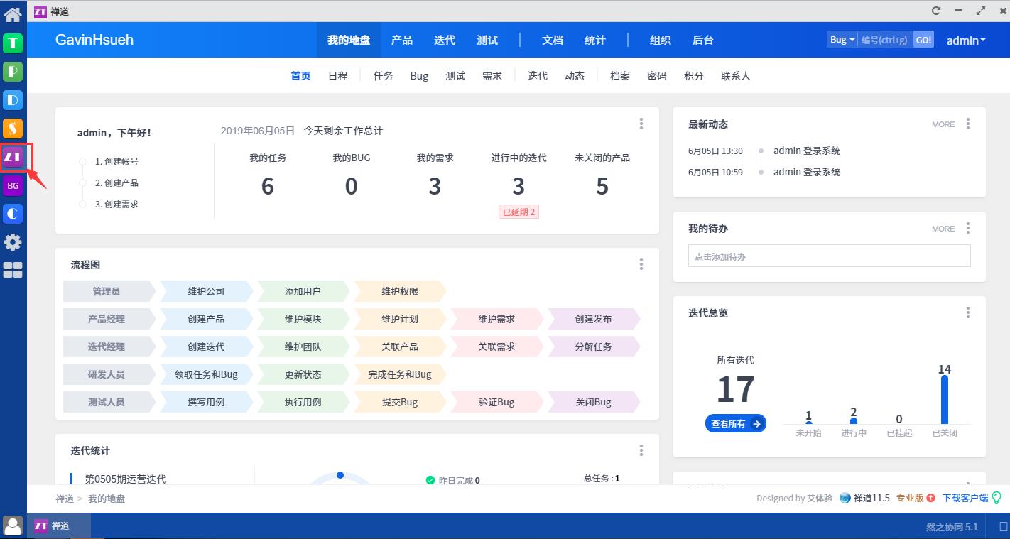 在然之里集成禅道成功后,可以直接在然之的界面打开和使用禅道。