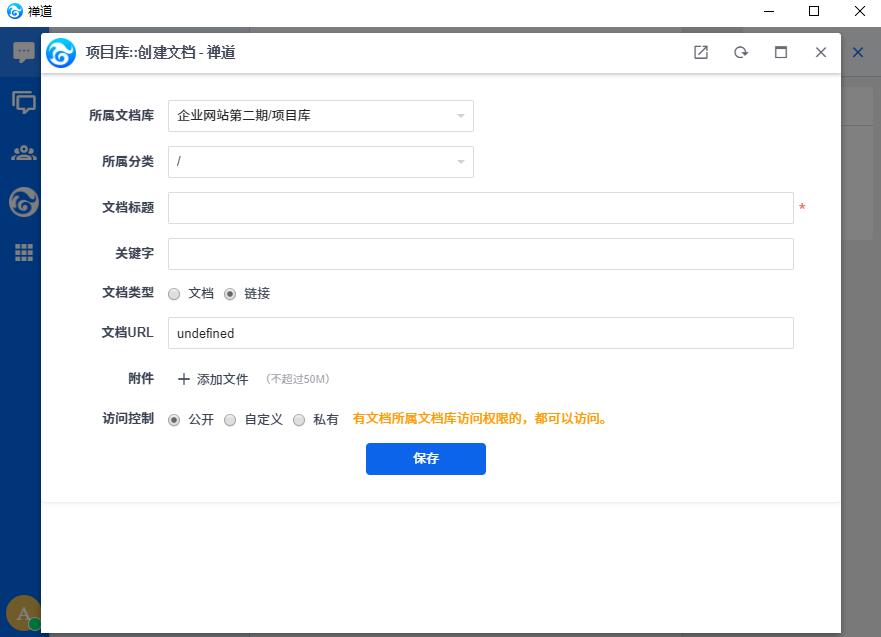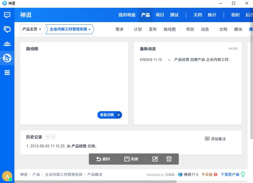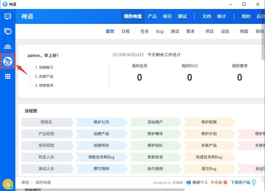客户端左侧导航显示禅道的全量入口,点击即可进入禅道页面,进行浏览操作。