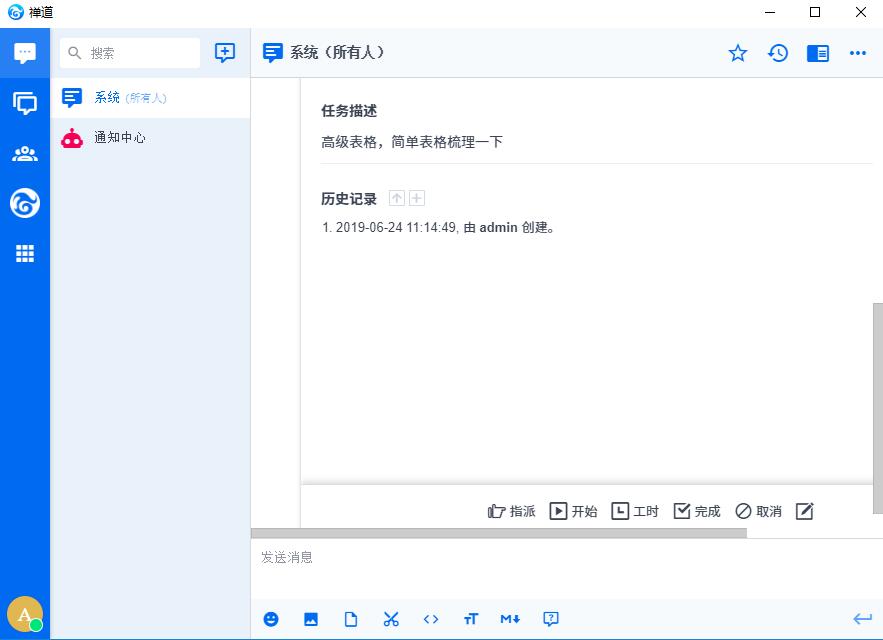 以任务的指派为例,指派人的禅道客户端的通知中心里,会收到任务的指派信息。