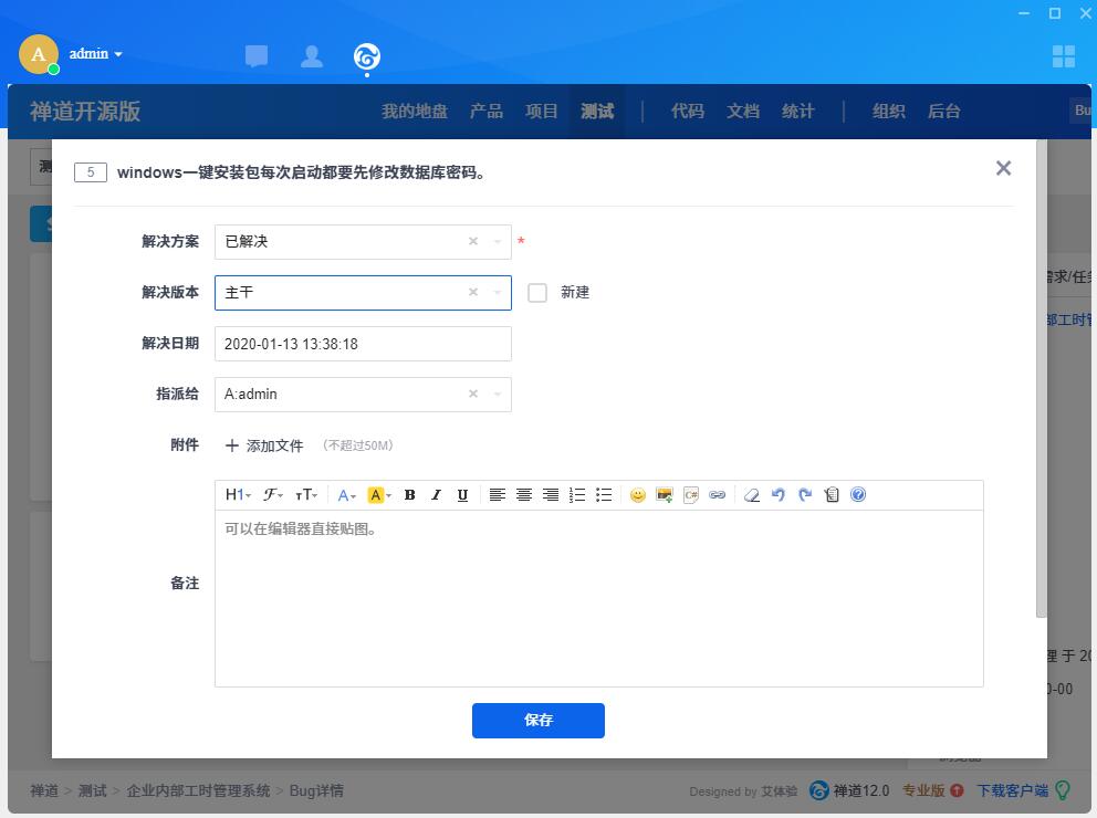 这里以禅道18.9为例进行说明,对应的禅道客户端为2.2.0。