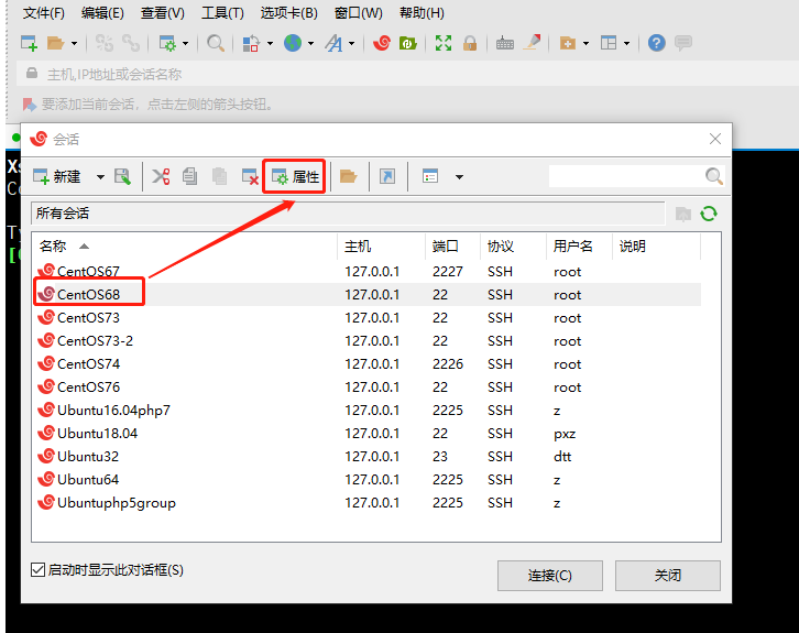 编辑器打开需要连接的禅道服务器主机,点击属性。