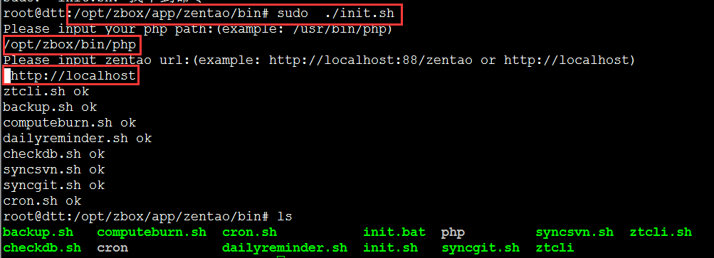 cd /opt/zbox/app/zentao/bin sudo ./init.sh